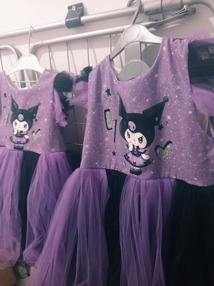 Kız çocukları için baskılı ve fitted kesim mor gotik elbise, rock punk havası taşıyor. kromili biri 3-4 yaş diğeri 6-7-8 yaş uyumlu bir kere doğum günün de giyildi ve küçüldü bir daha giyemediler. hiçbir sıkıntısı yoktur.