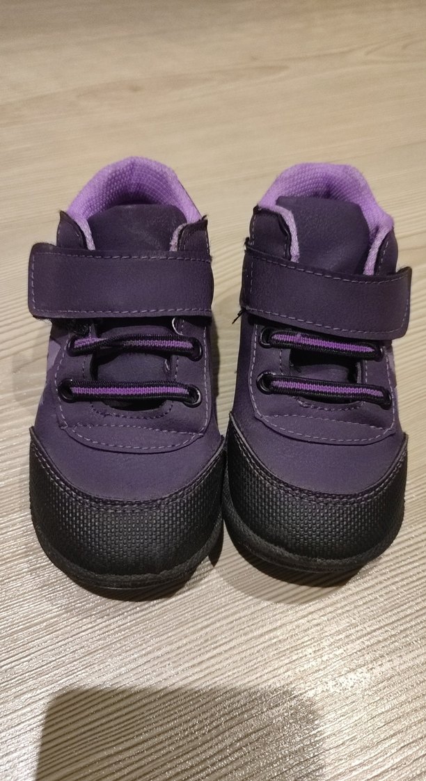 Koyu mor renkli, Velcro bantlı, kauçuk tabanlı kız çocuk ilk adım ayakkabısı, sokak stili, trend casual görünüm için.
