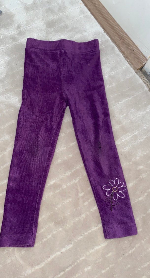 Kız çocuklar için mor, yumuşak ve sıcak kumaştan yapılmış, hafif batik desenli ve kürk detaylı tayt. Trend sokak stili için uygun.