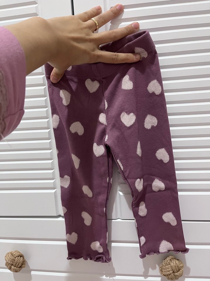 Kız Çocuk Mor Kalp Desenli Pamuklu Tayt