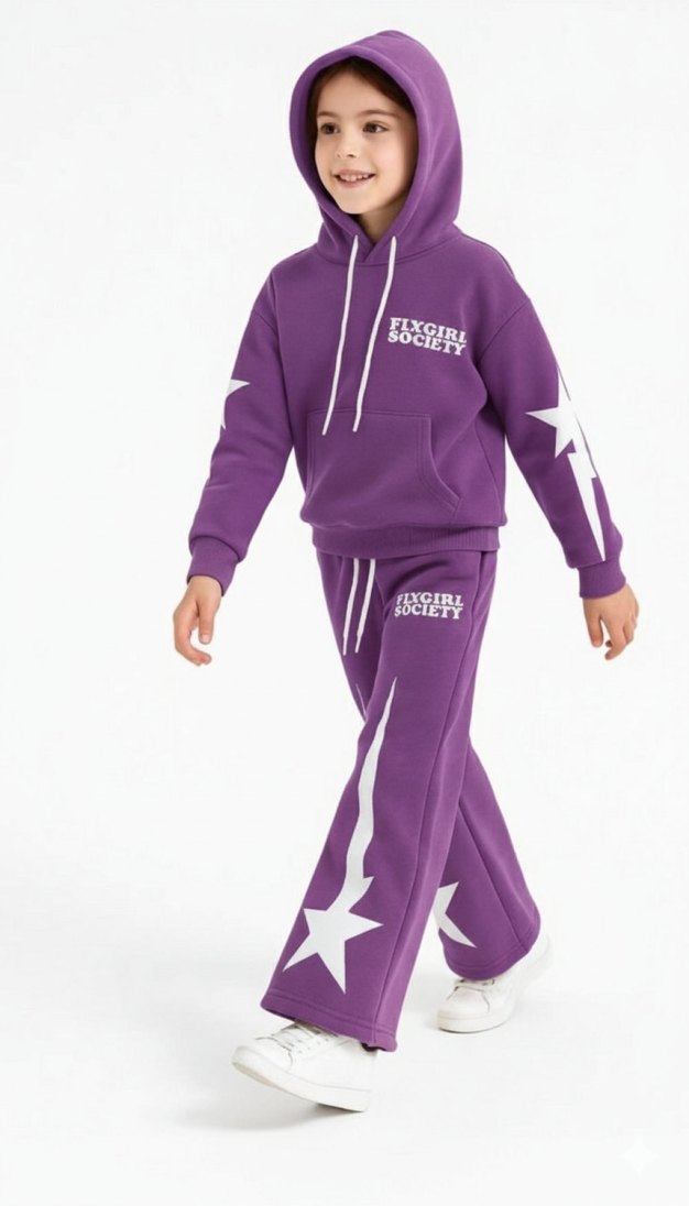 Kız Çocuk Mor Kapüşonlu Eşofman Takımı