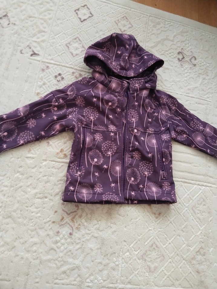 Kız çocukları için kapüşonlu, fermuarlı ve fitted kesime sahip mor renkte, maskara desenli yumuşak ve sıcak kumaştan ceket. Sokak modasına uygun.