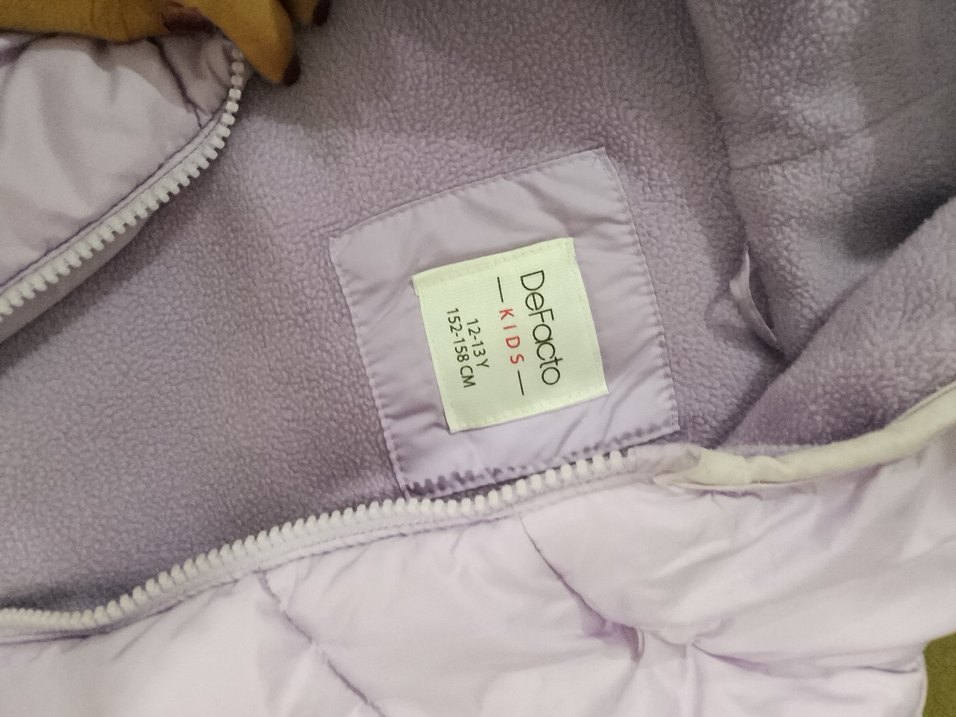 Yumuşak ve sıcak kumaştan, kapüşonlu ve fermuarlı, pastel mor renkli baskılı, sade ve basic tarzda kız çocuk ceket. DeFacto KIDS ürünü.