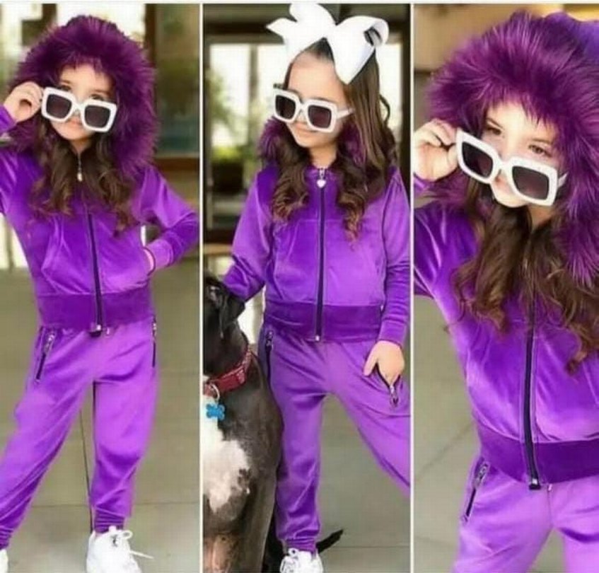 Kız Çocuk Mor Kapüşonlu Kürklü Eşofman Takımı