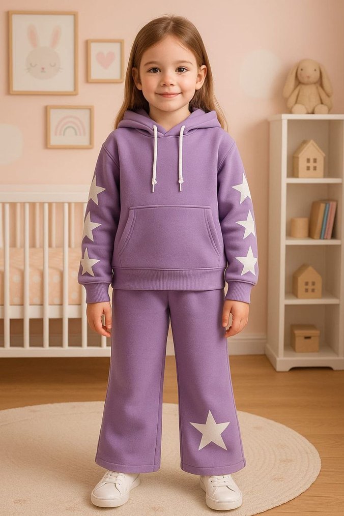 Kız Çocuk Mor Kapüşonlu Nakışlı Eşofman Takımı