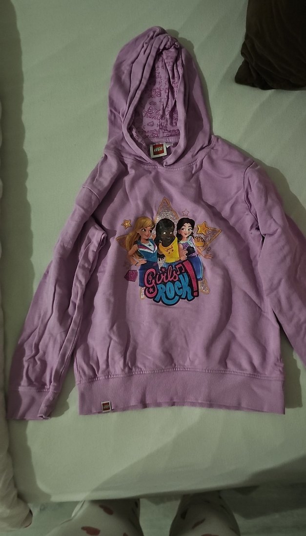 Mor uzun kollu kız çocuk sweatshirt, yuvarlak yaka ve bol kesim. Renkli baskı ve örme detaylara sahip, yumuşak kumaştan üretilmiştir. Rahat sokak stili için uygundur.