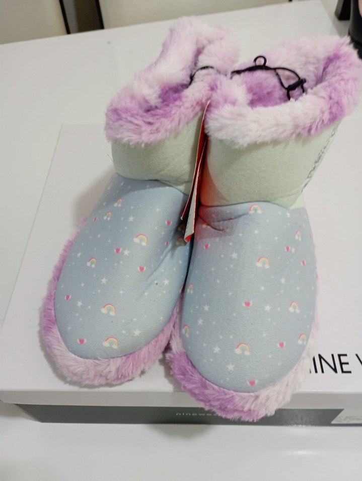 Pastel renklerde, kürklü detaylı ve tie-dye desenli yumuşak ve sıcak kumaştan kız çocuk ev terliği. 29/30, 33/34 no ✅✅