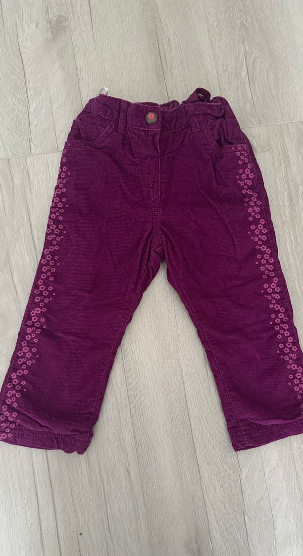 Yanları nakışlı, düğmeli, koyu mor renk bol kesim kız çocuk pantolonu. Yumuşak tekstil kumaştan, bohem tarzına uygun.