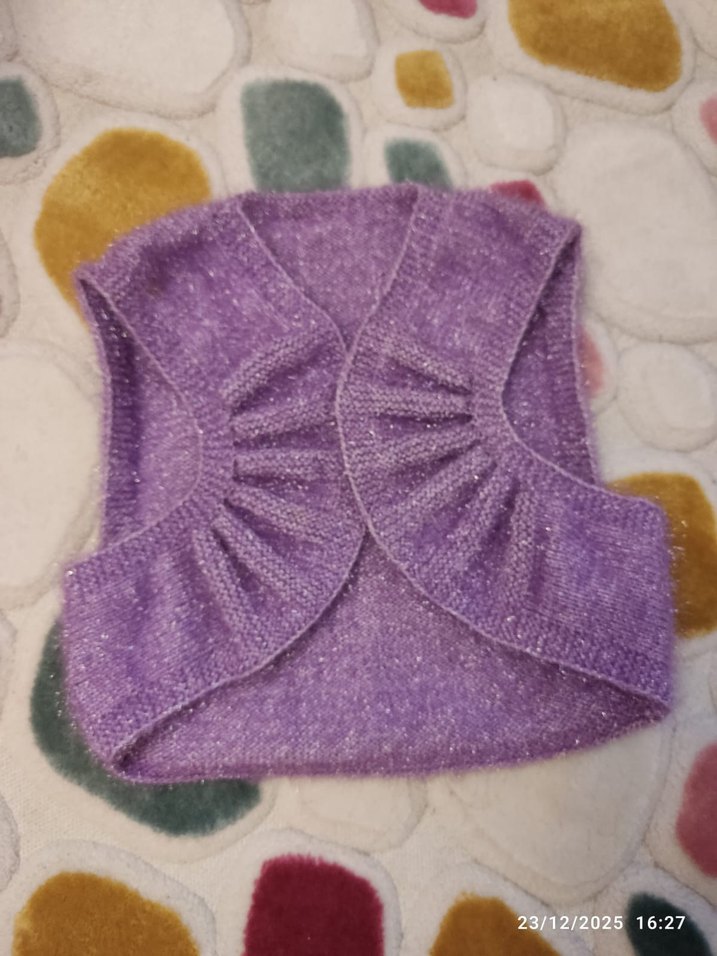 Ûrün el örgüsü ve hiç kullanılmamıştır. Simli mor iple örülmüş tatlı bir modeldir. Sanırım 3-4 yaş civarı içindir ama ölçülerini yazıyorum yine de ona göre karar veriniz. Boyu 32cm, eni 36cm"dir.
