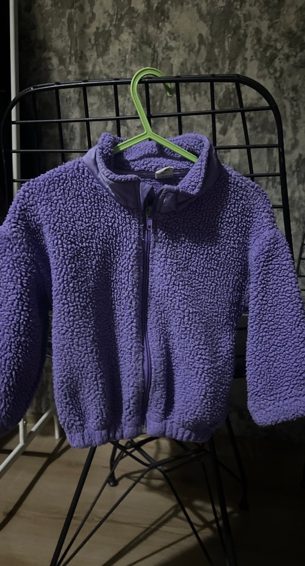 Koyu mor renkte, örgü dokulu, fermuarlı ve bisiklet yaka kız çocuk ceketi. Yumuşak ve sıcak kumaştan üretilmiştir.