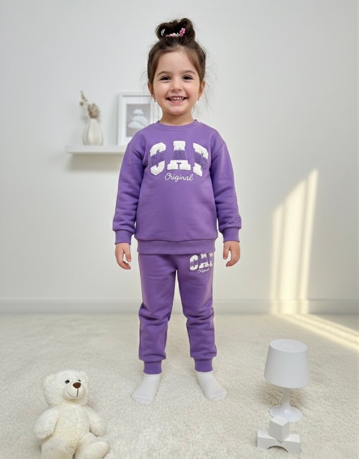 Kız Çocuk Mor Pamuklu Baskılı Eşofman Takımı