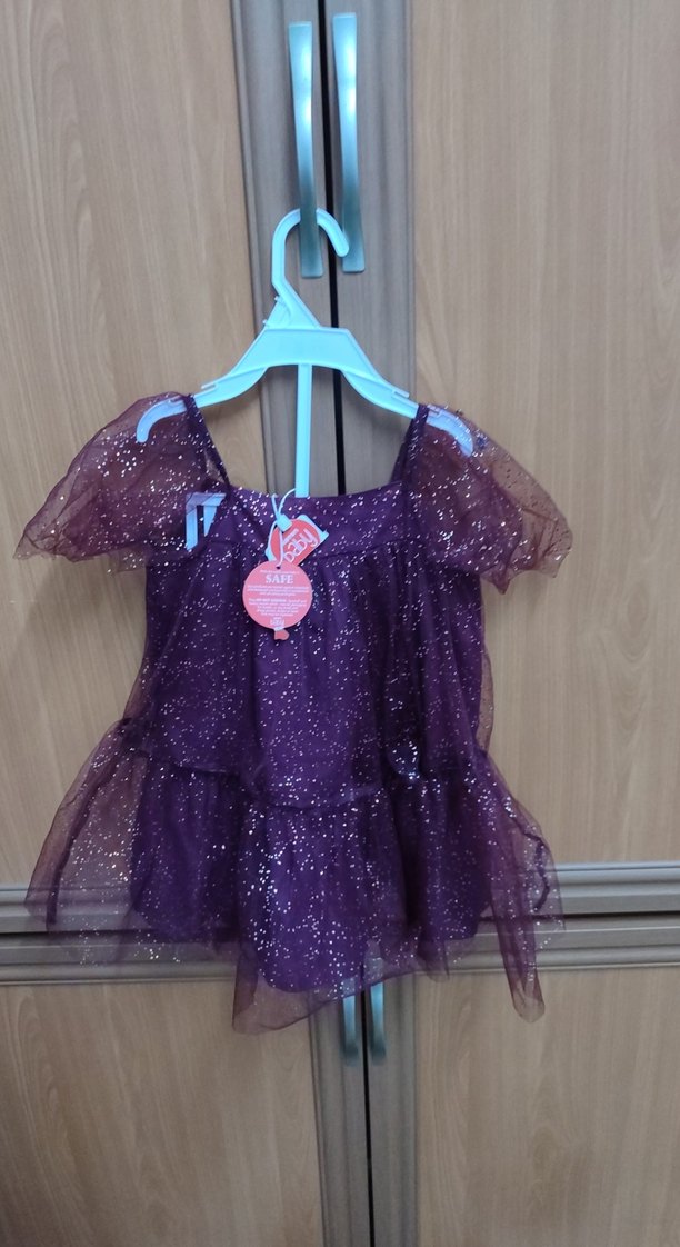 Koyu mor sentetik kumaştan, parlak detaylı, straplez ve oturan kesime sahip, bağlama desenli şık gotik tarz kız çocuk elbisesi. ✨