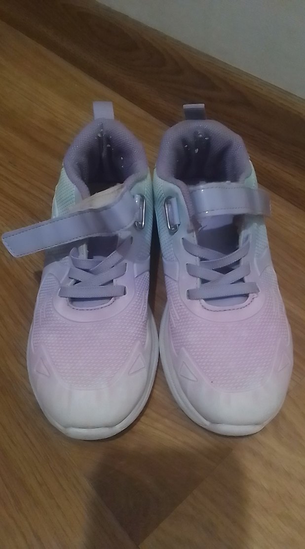Mor pastel tonlarında, bağcıklı ve cırt cırtlı, kauçuk tabanlı kız çocuk spor ayakkabısı. Tie-dye desenli, şık ve rahat bir model.