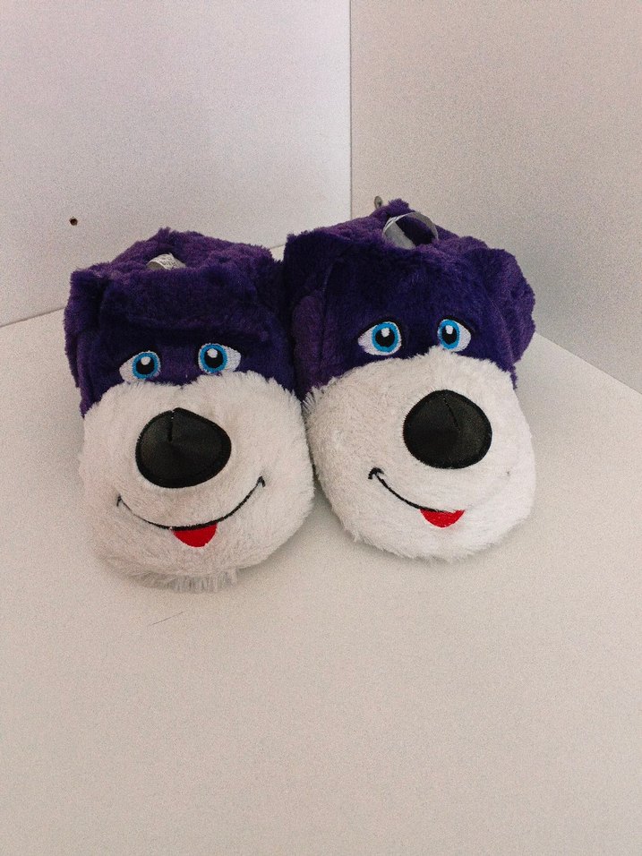 kız çocuklar için mor renkli, peluş ve hayvan yüzü detaylı sıcak ev terliği, yumuşak ve rahat bir kullanım sunar.