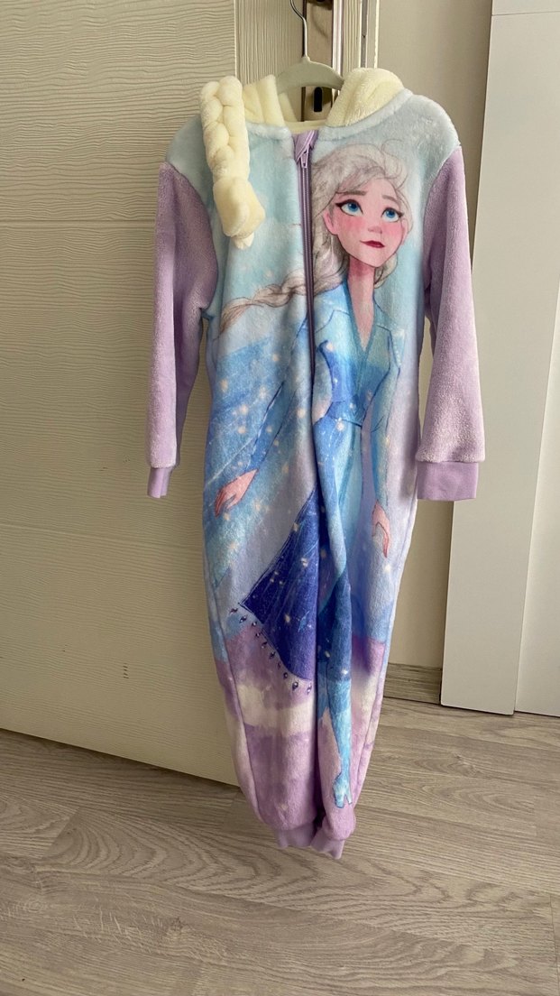 Kız çocuk Elsalı polar tulum, uzun kollu ve bisiklet yaka. Pastel tonlarda baskılı, kapüşonunda örgü saç detaylı. Yumuşacık bir tulum, kışın sıcacık tutacaktır eminim. Yurt dışından hediye geldi, lisanslı ürün. Bir kere deneme amaçlı giyildi. Küçük geldiği için satıyorum
