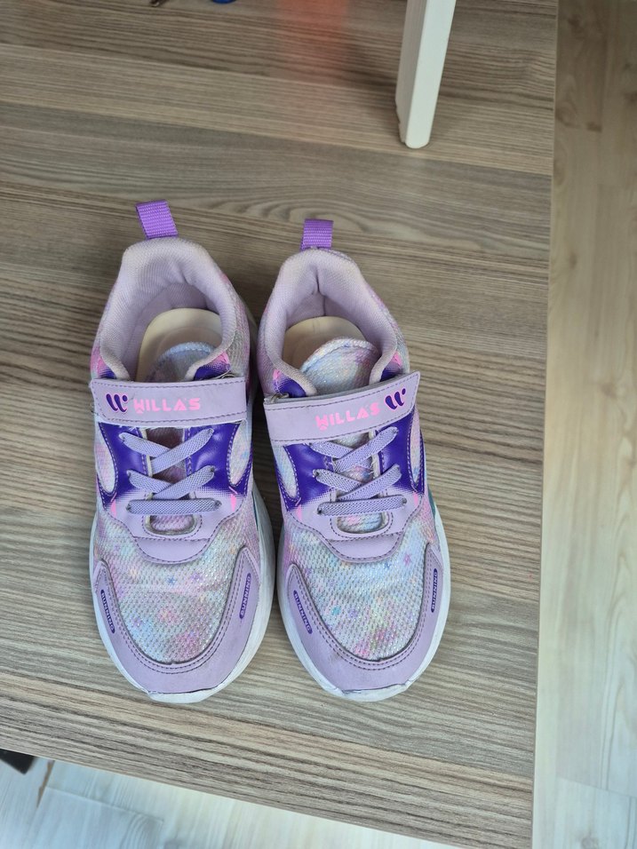 Mor renkli, pastel tonlarda batik desenli kız çocuk spor ayakkabısı. Kauçuk tabanlı ve kolay giyilen.