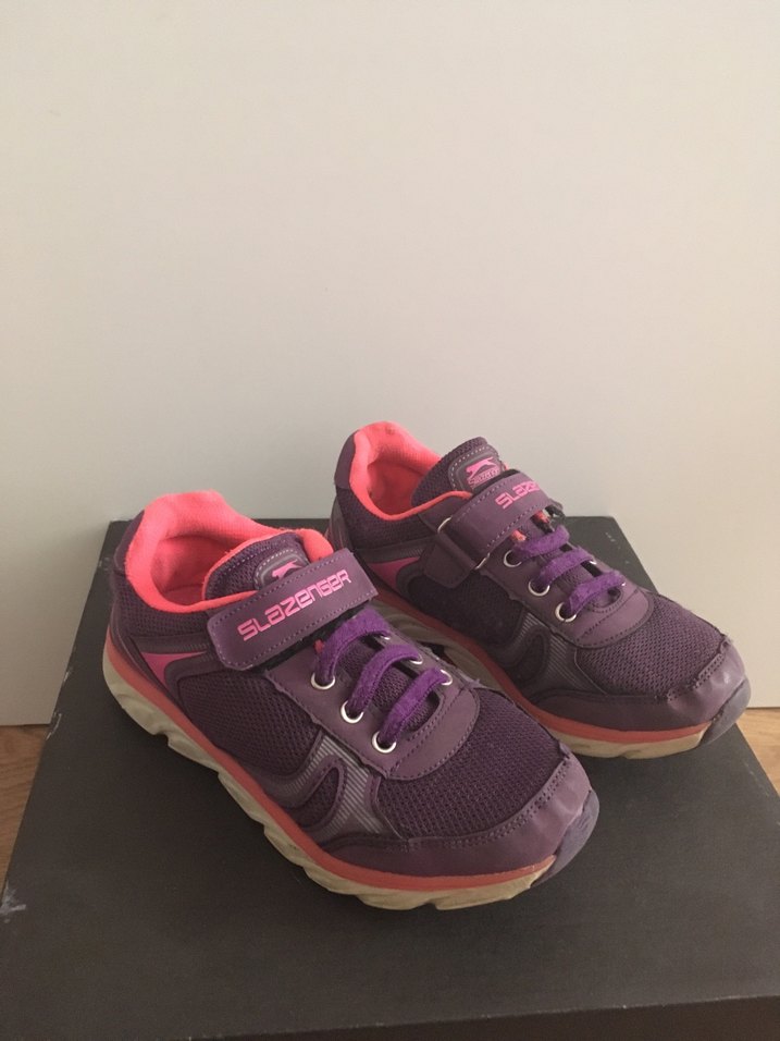 Koyu mor renkli kız çocuk spor ayakkabısı, cırt cırtlı ve kauçuk tabanlıdır. Rahat ve günlük sokak stili için uygundur.