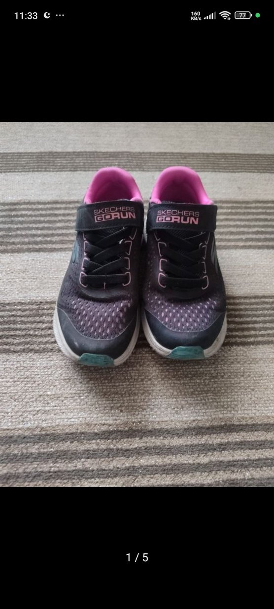Koyu mor renkli, yılan desenli kız çocuk spor ayakkabısı. Velcro bantlı, kauçuk tabanlı ve rahat bir model. Marka: Skechers.