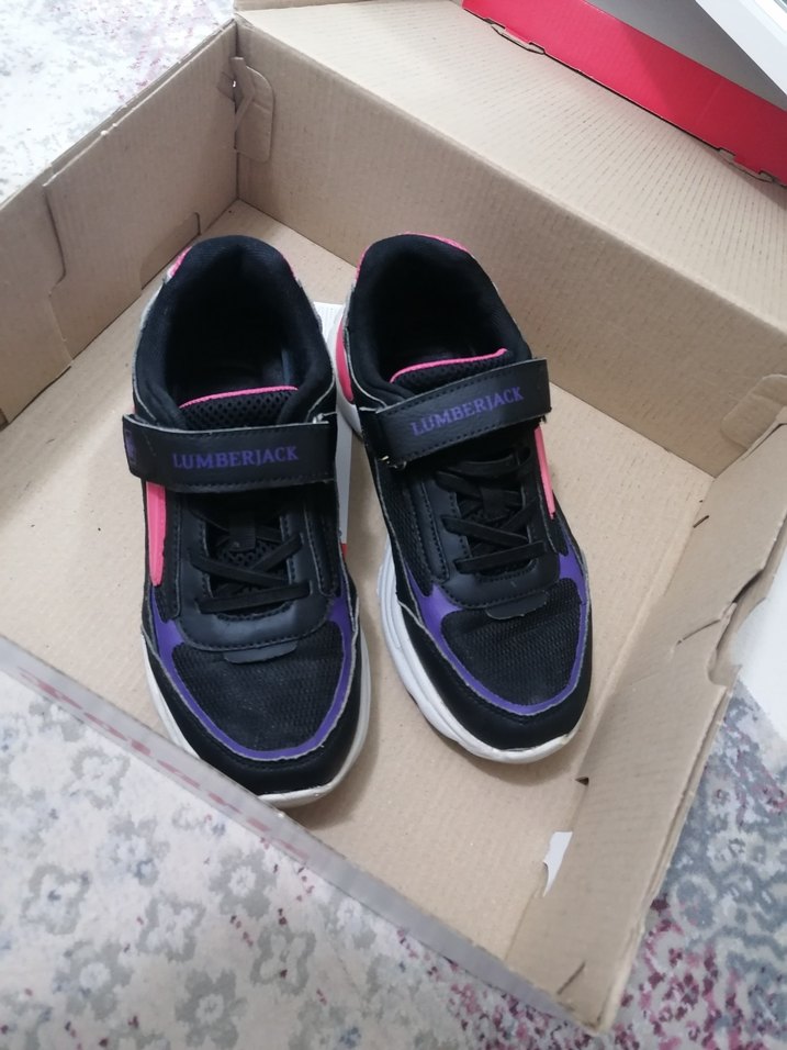 Mor renkli, velcro bantlı kız çocuk spor ayakkabısı. Kauçuk tabanlı, Lumberjack marka, resimde göründüğü gibi hiç bir sıkıntısı yok ayak numarası olmadığı için satışta