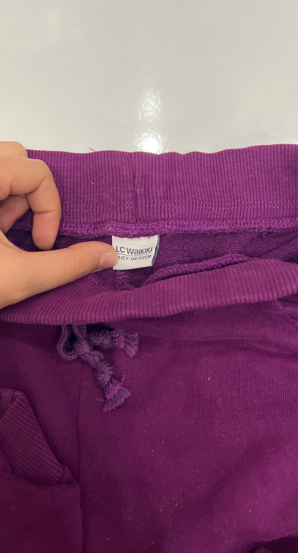 Kız çocuk mor süet jogger eşofman altı, fermuarlı detaylı, uzun kollu ve düz tasarımlıdır. Rahat ve yumuşak süet kumaştan üretilmiştir. ispanyollar hiç kullanılmadı