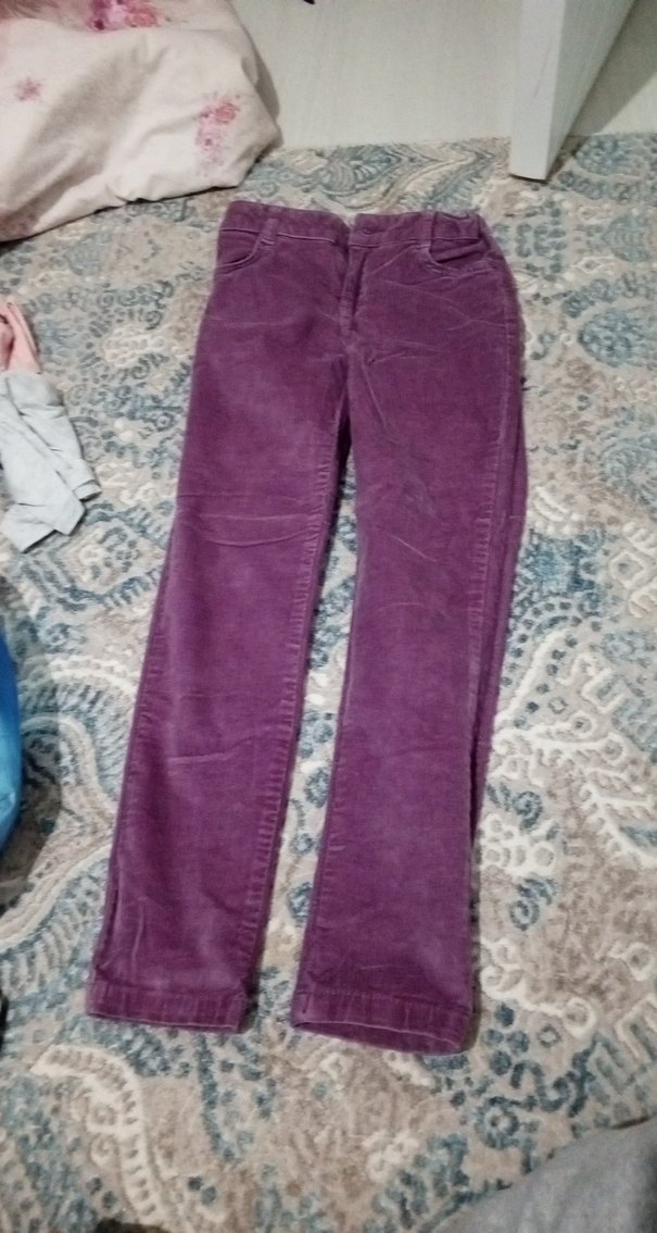 Koyu mor renkte, süet dokulu kız çocuk pantolonu. Normal kesim ve düğmeli kapanışa sahip, sade ve trend bir tarz sunar.
