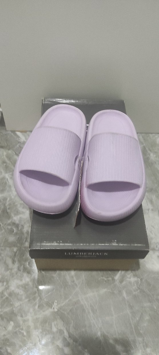 Mor platform topuklu terlikler, pastel tonlarda, desen içermeyen minimalist tasarıma ve günlük kullanım için kauçuk tabana sahiptir.