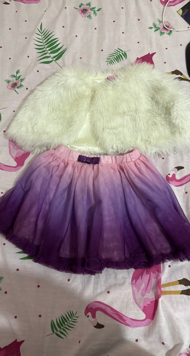 Pastel mor tonlarında tie-dye desenli, yumuşak sentetik kumaştan yapılmış, bele şık fiyonk detaylı, fitted kesim kız çocuk eteği. ✨