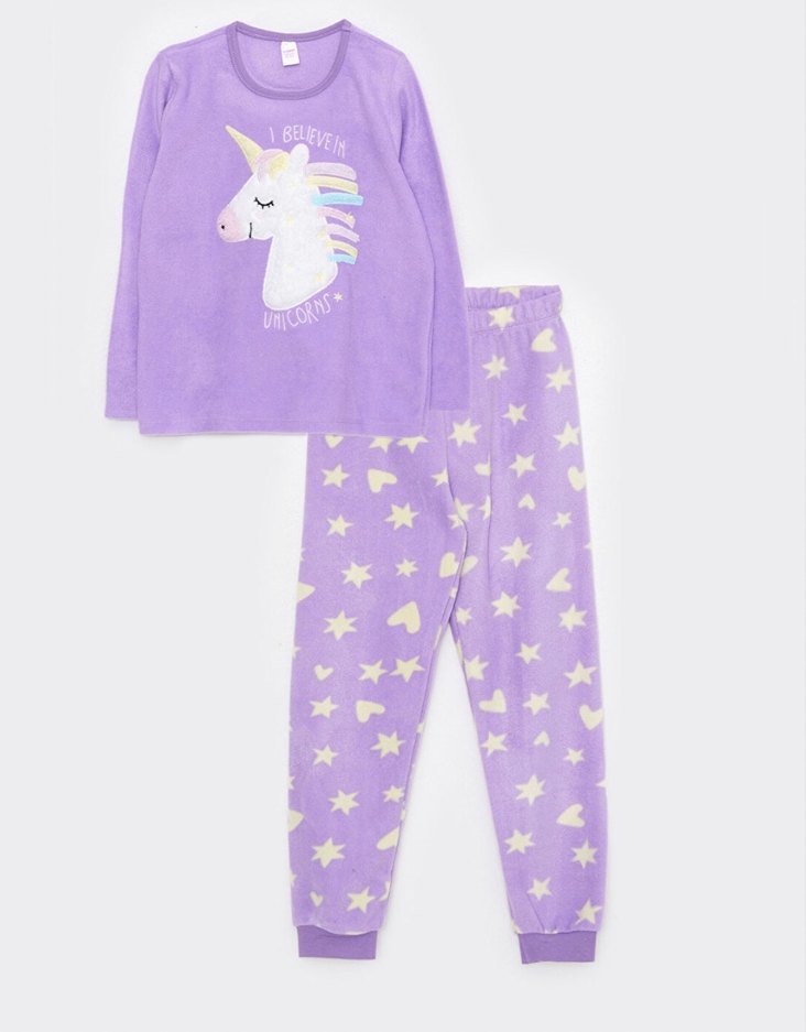Kız Çocuk Mor Unicorn Desenli Pijama Takımı