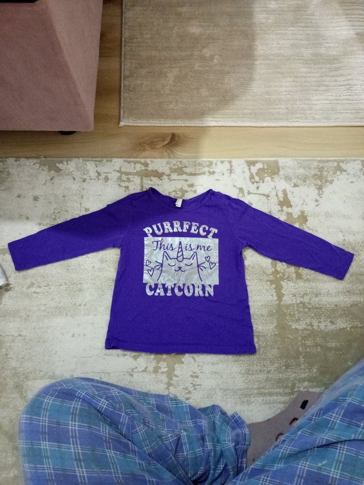 Kız Çocuk Mor Uzun Kollu Pamuklu Tişört