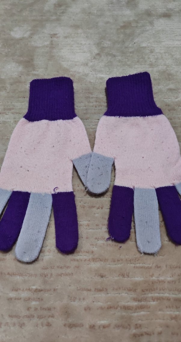 Kız Çocuk Mor ve Pembe Örgü Eldiven