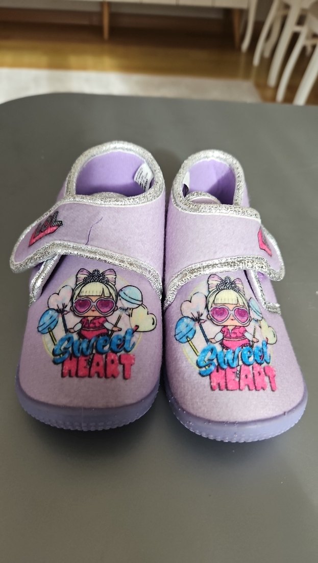Pastel mor renkli, baskılı ve cırt cırtlı ev terliği. Yumuşak ve sıcak kumaştan, rahat ve trend sokak stiliyle uyumlu. Lol Baskılı 24 Numara ev patiğidir.