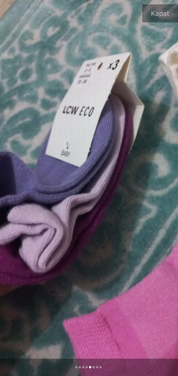 Pastel mor tonlarında, yün malzemeden yapılmış, bağlama desenli kız çocuk çorap seti. LCW ECO markalı, yumuşak ve sıcak tutar.