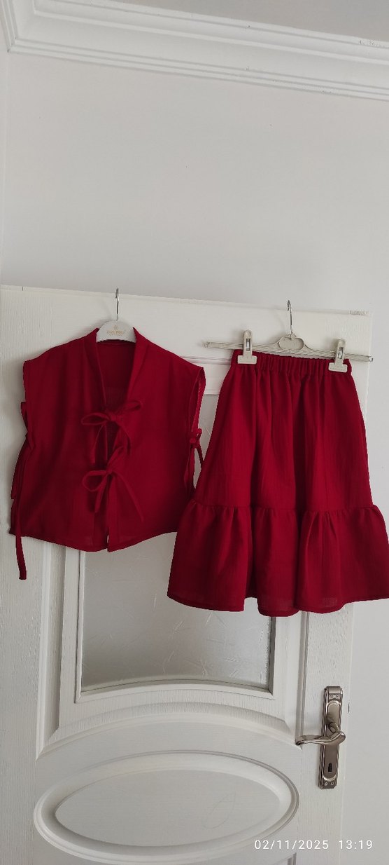 Koyu kırmızı renk . 7-8 yaş için uygundur etek boyu 55 cm dir