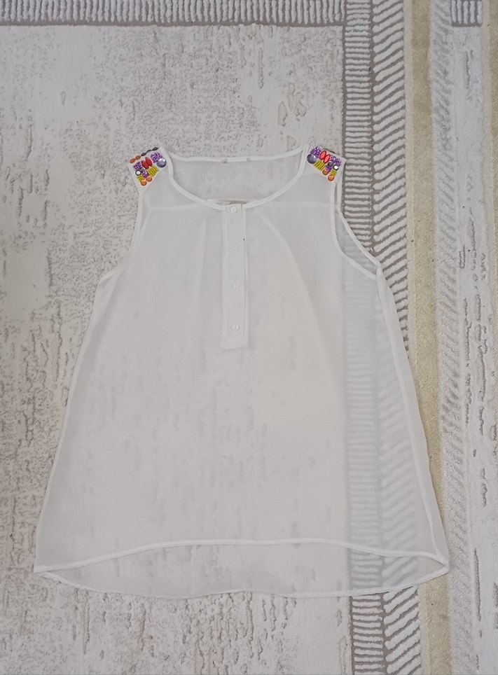 Kız Çocuk Nakışlı Beyaz Kolsuz Bluz