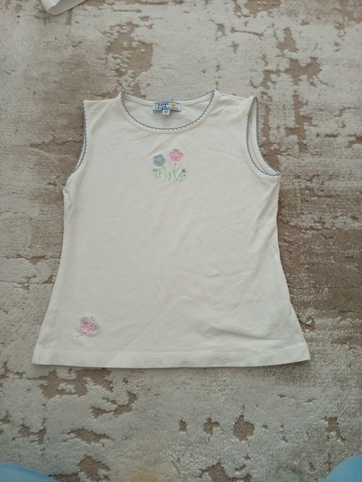 Kız Çocuk Nakışlı Beyaz Kolsuz Tişört