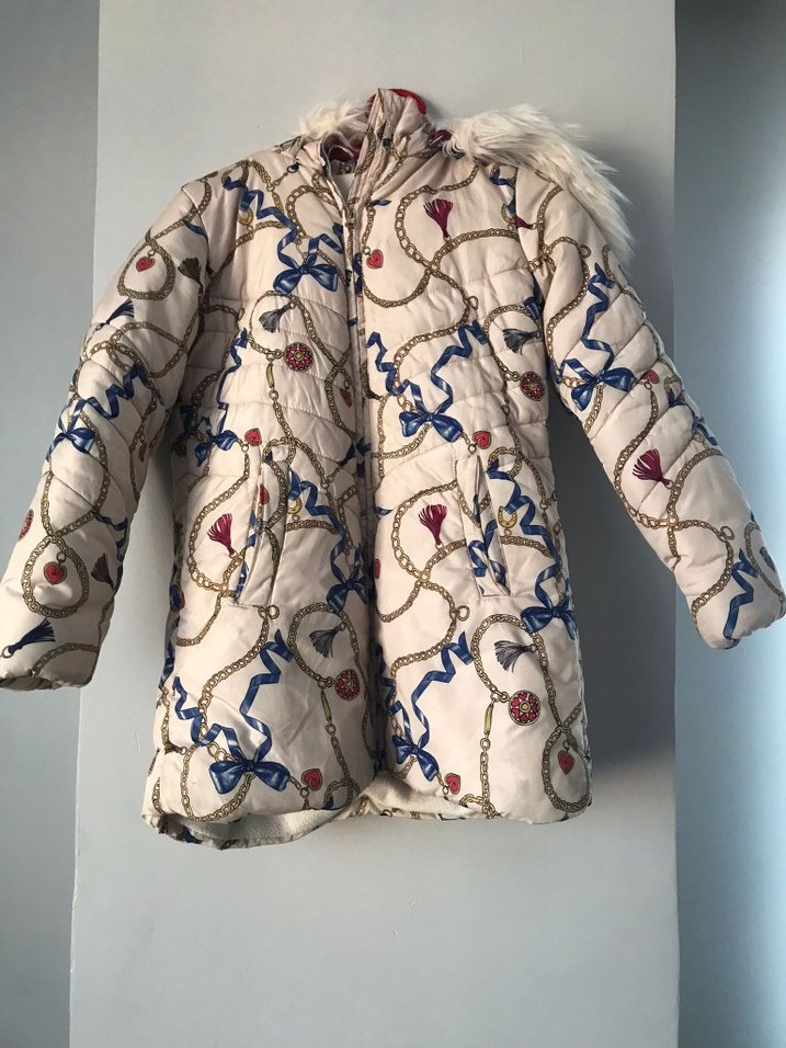 Kız Çocuk Nakışlı Beyaz Kürklü Mont