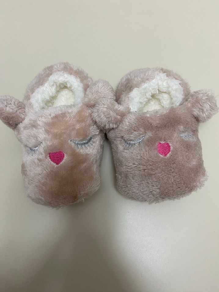 Kız bebek ev terlikleri, yumuşak ve sıcak kumaş, kürk detaylı ve nakış işlemeli desenlere sahiptir. Hiç kullanılmadı 17 numara