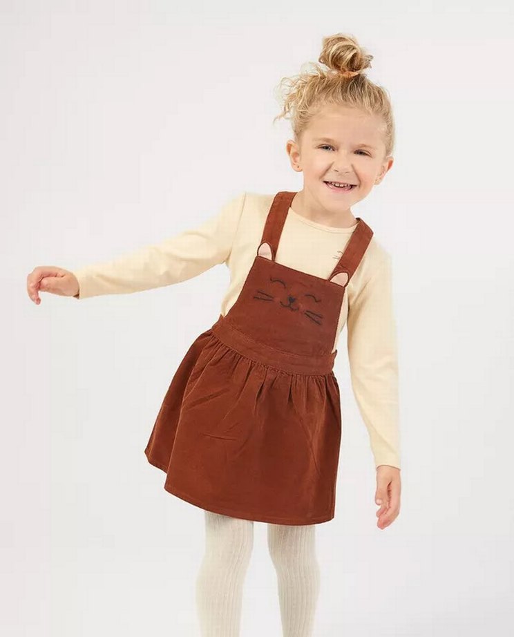 Kız Çocuk Nakışlı Kahverengi Elbise