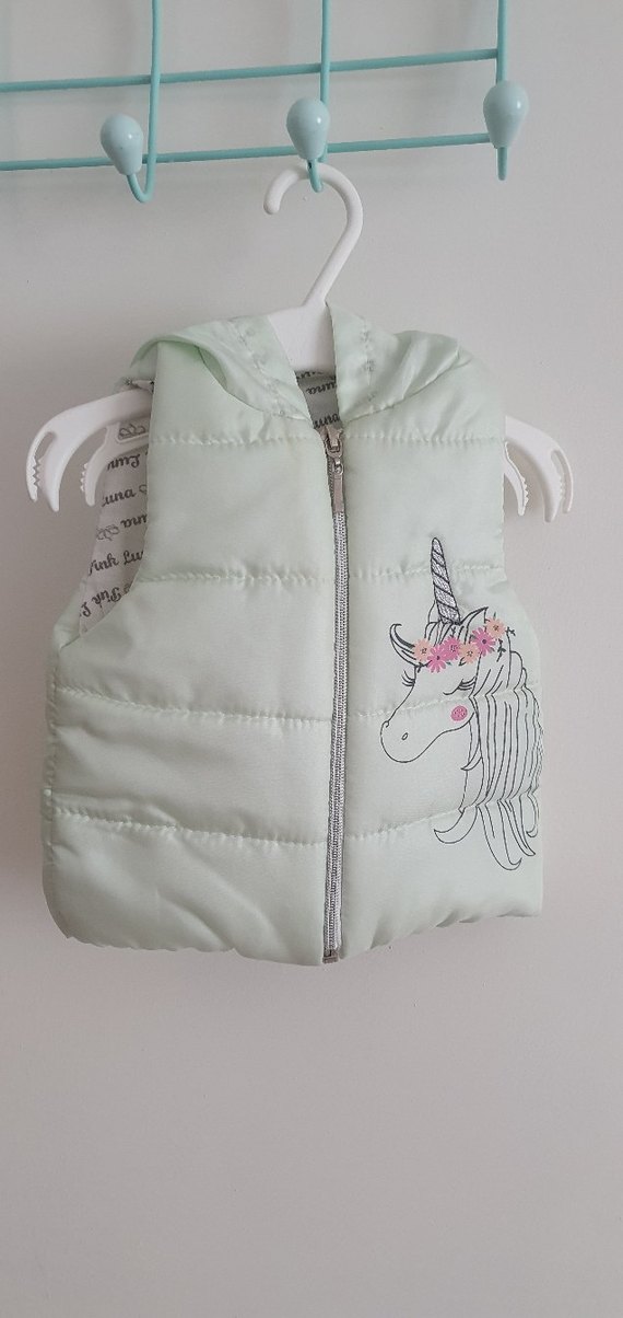 Yumuşak ve sıcak kumaştan, fermuarlı, nakışlı unicorn desenli, kolsuz gri yelek. Trendy ve rahat kesimde.