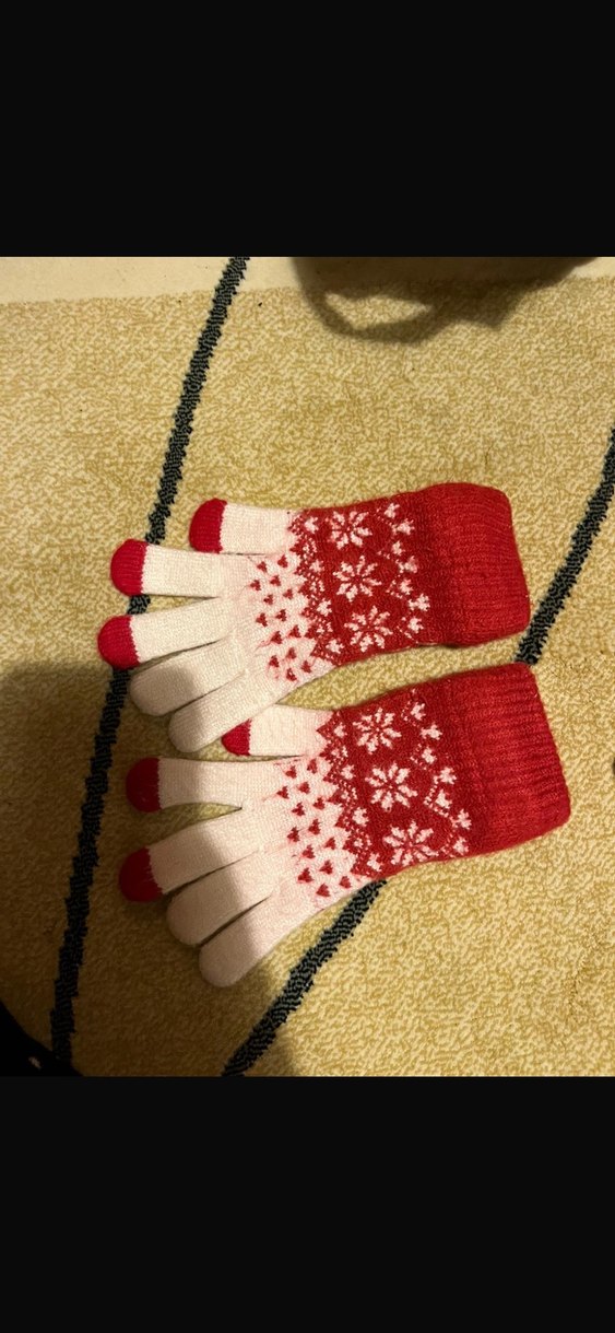 Kız çocukları için kırmızı ve krem renklerde nakışlı örgü eldivenler, bohem ve retro tarzda. Yumuşak örgü kumaş sıcaklık ve konfor sağlar.