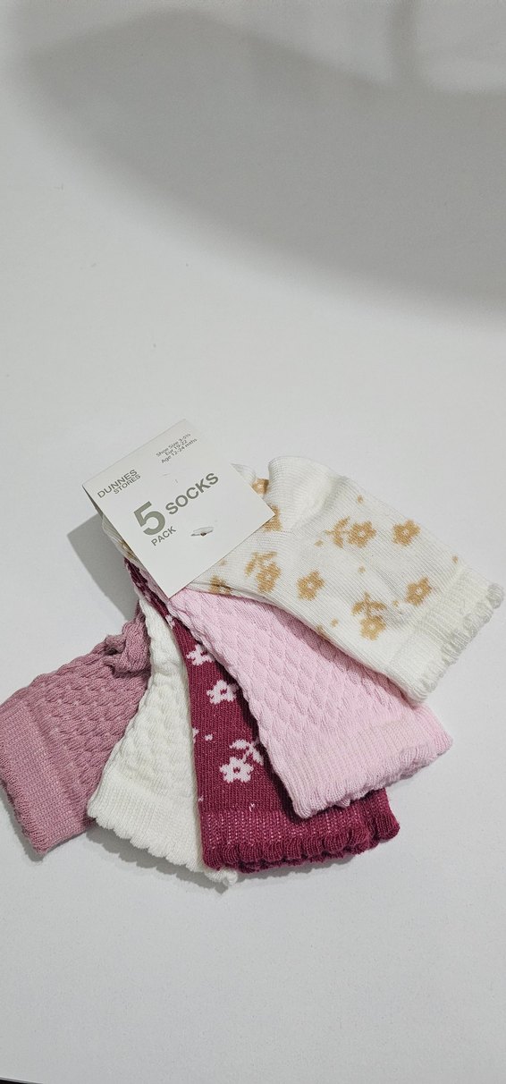 Kız çocuklar için nakışlı çiçek desenli, pastel pembe ve krem renklerde 5'li örgü çorap seti. Yumuşak ve rahat dokulu.