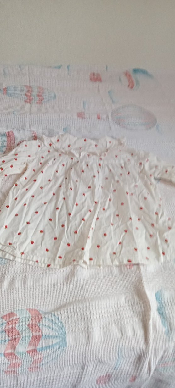 Kız çocukları için pamuklu, bol kesim, uzun kollu, V yakalı, nakışlı ve fırfırlı beyaz elbise. Pastel tonlarda bohem tarzda.