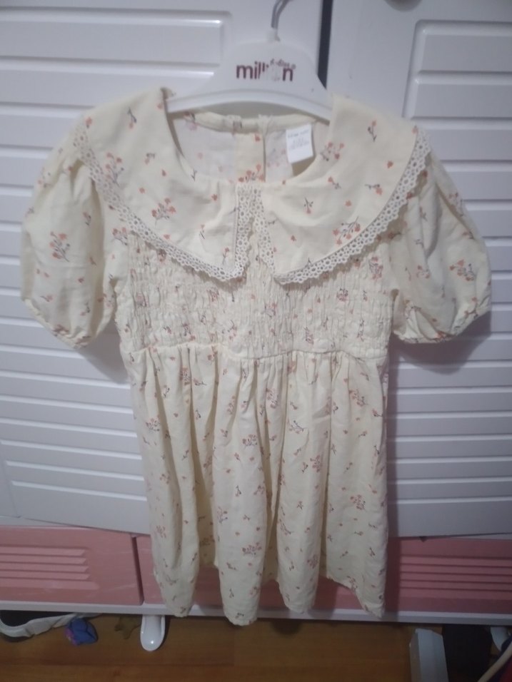 Kız çocukları için pamuklu, nakışlı, kısa kollu, v yaka ve bol kesim bohem tarzı elbise. Fırfırlı detaylarla süslenmiştir.