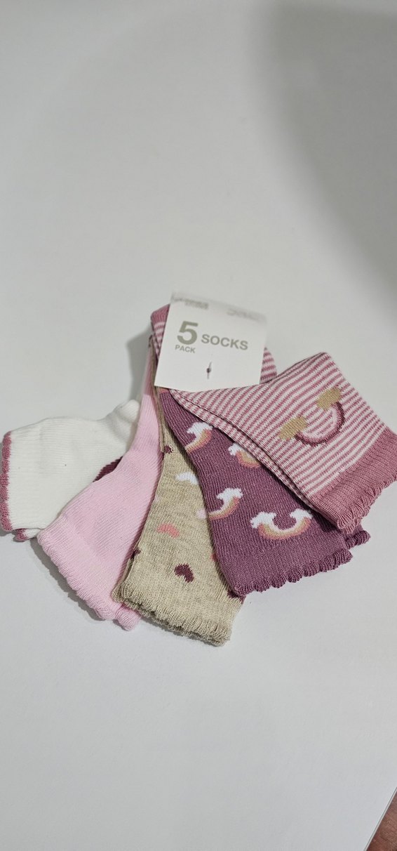 Bu 5'li kız çocuk çorap seti, pastel renkler ve nakış desenlere sahiptir. Yumuşak pamuktan üretilmiştir, rahatlık ve şıklık sağlar.