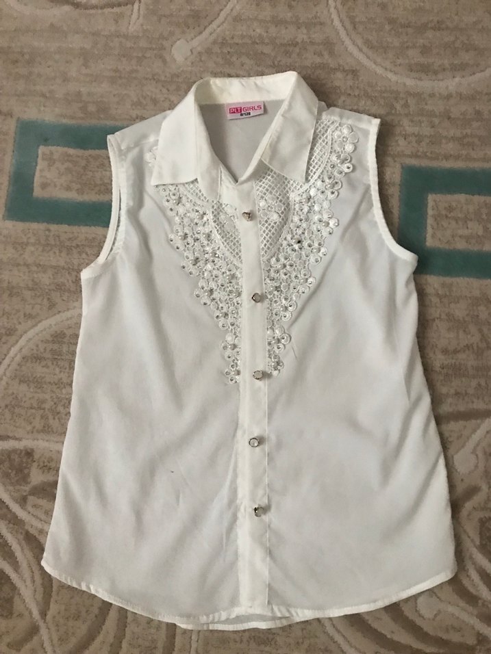 Kız Çocuk Nakışlı Pamuklu Kolsuz Bluz