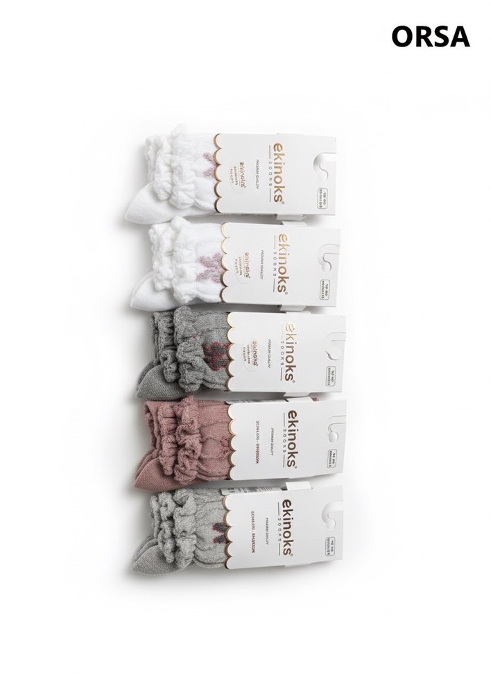Beyaz ve gri tonlarında, nakışlı detaylara sahip kız çocuk pamuklu külotlu çorap ve ekinoks markalıdır. Gri pembe beyaz renkler var yaş 3-4-5-6-7-8