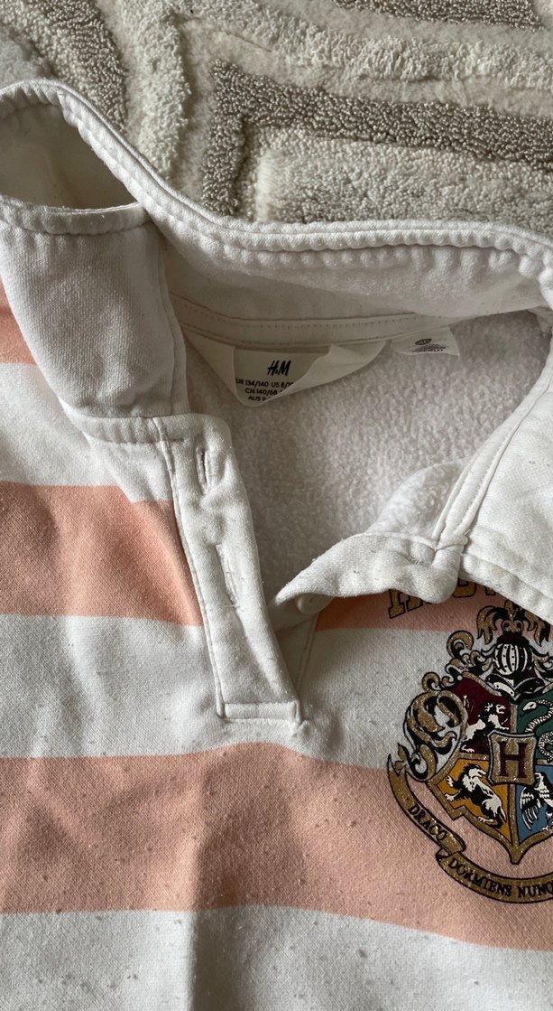 Pamuklu, uzun kollu, yakalı ve fermuarlı kız çocuk sweatshirtü. Pastel renklerde nakışlı, bol kesim ve rahat bir stil sunar. H&M markalı.