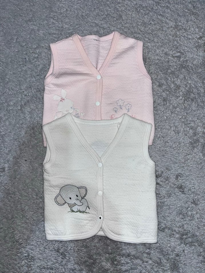 Kız çocukları için pamuklu, nakışlı pastel renklerde, straplez yaka ve fitted kesim triko yelekler.
