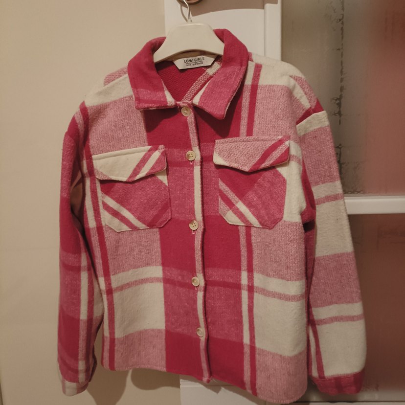 Pembe ve krem renkli kare desenli, düğmeli, uzun kollu, 8-9 yaş kalın sıcak tutar yünlüdür. 1 kez giyilmiştir sıfırdan farksızdır