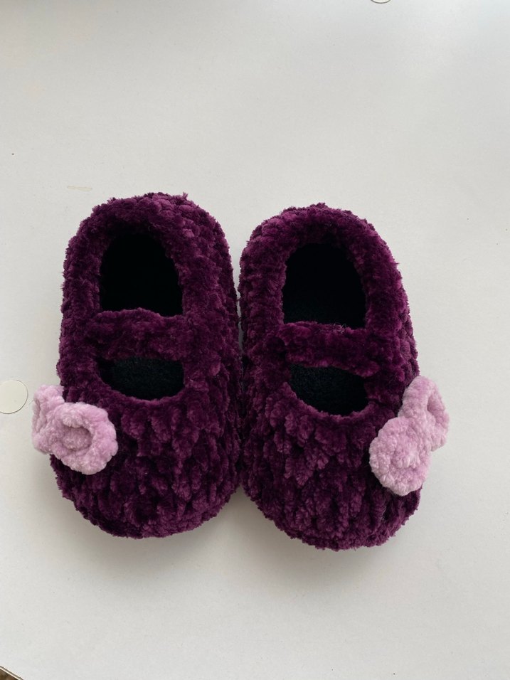 Mor renkli, keçe tabanlı kız çocukları için sıcak tatlı babet.
